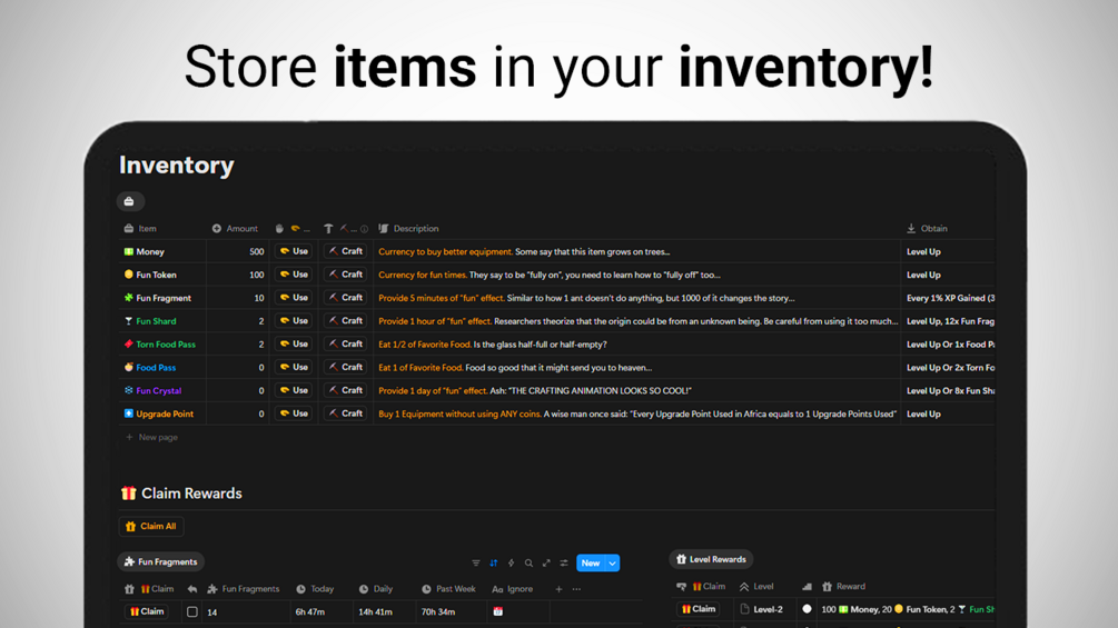 Claim rewards that are usable in real life, giving a tangible sense of accomplishment and a fun way to keep yourself in check!