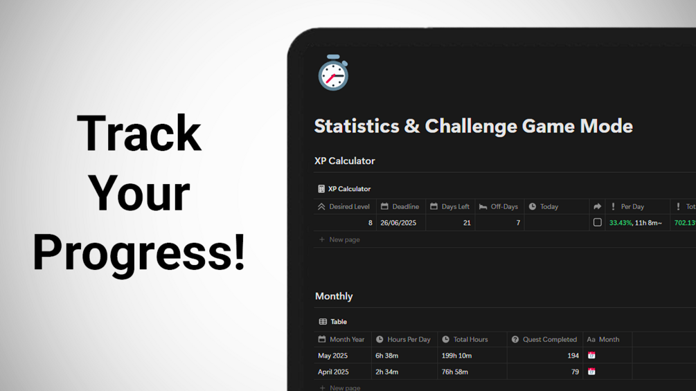Track your "hours played" in the game of life. See your growth over time, and celebrate wins that actually mean something.