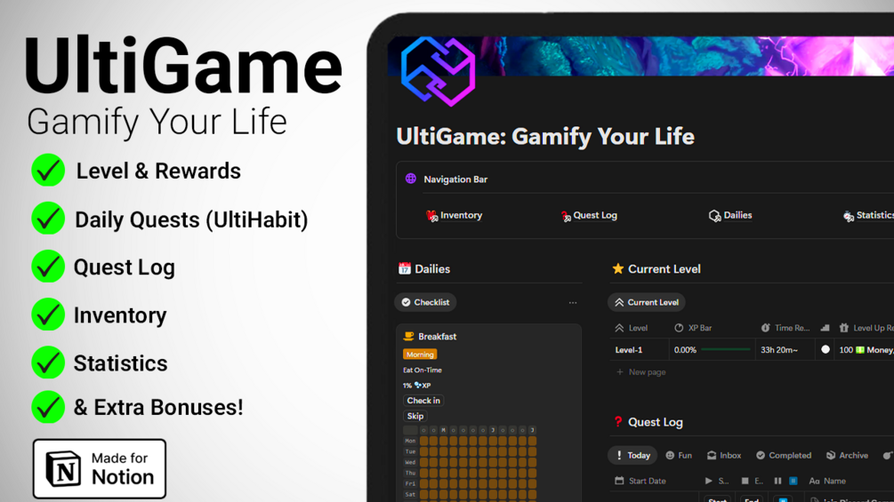UltiGame works 100% inside Notion — no extra tools, no downloads.